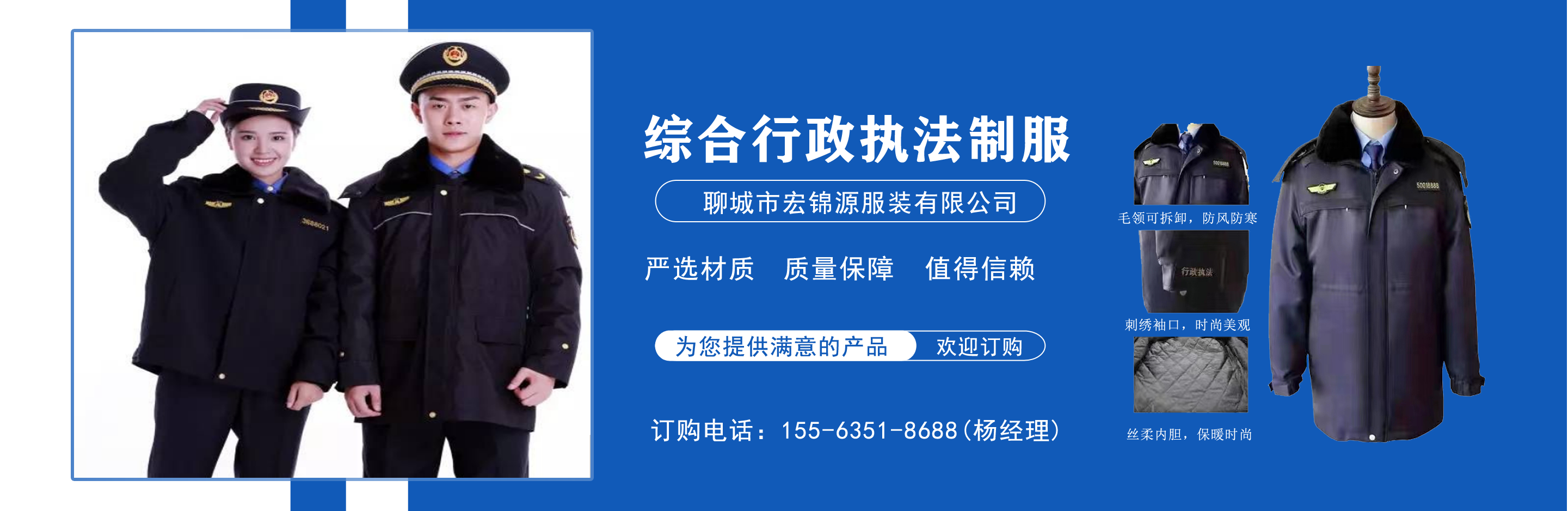 聊城市宏錦源服裝有限公司位于江北水城—山東聊城,地理位置優(yōu)越,交通便利。公司主營綜合行政執(zhí)法制服,交通執(zhí)法服裝,應急管理執(zhí)法標志服,市場監(jiān)督管理標志服,農業執(zhí)法服裝,生態(tài)環(huán)境保護制服,文化市場執(zhí)法服,城管標志服裝廠,衛生監(jiān)督制服,六部門標志服廠家等,值得信賴! 公司生產的標志服裝據有造型美、板型新、多次水洗不退色、不變型、不起泡。 “認真辦事,踏實做人”是宏錦源的企業精神,我們的宗旨是:“用服務與真誠來換取你的信任與支持,互惠互利,共創(chuàng)雙贏!”我公司愿與國內外各界同仁志士竭誠合作,共創(chuàng)未來企業目標:在已選定的服飾領域中,成為行業的卓越者。 經營理念:追求產品卓越,為用戶提供完美、高效的服務。...